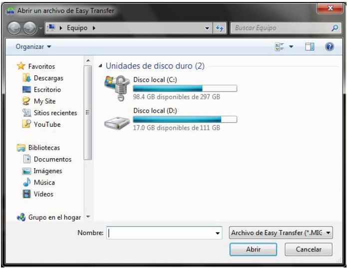 07 Se abrirá una pantalla adicional para que busques el archivo que has generado previamente en Windows XP. Una vez que encuentres ese archivo, haz doble clic sobre el mismo y luego presiona Abrir.